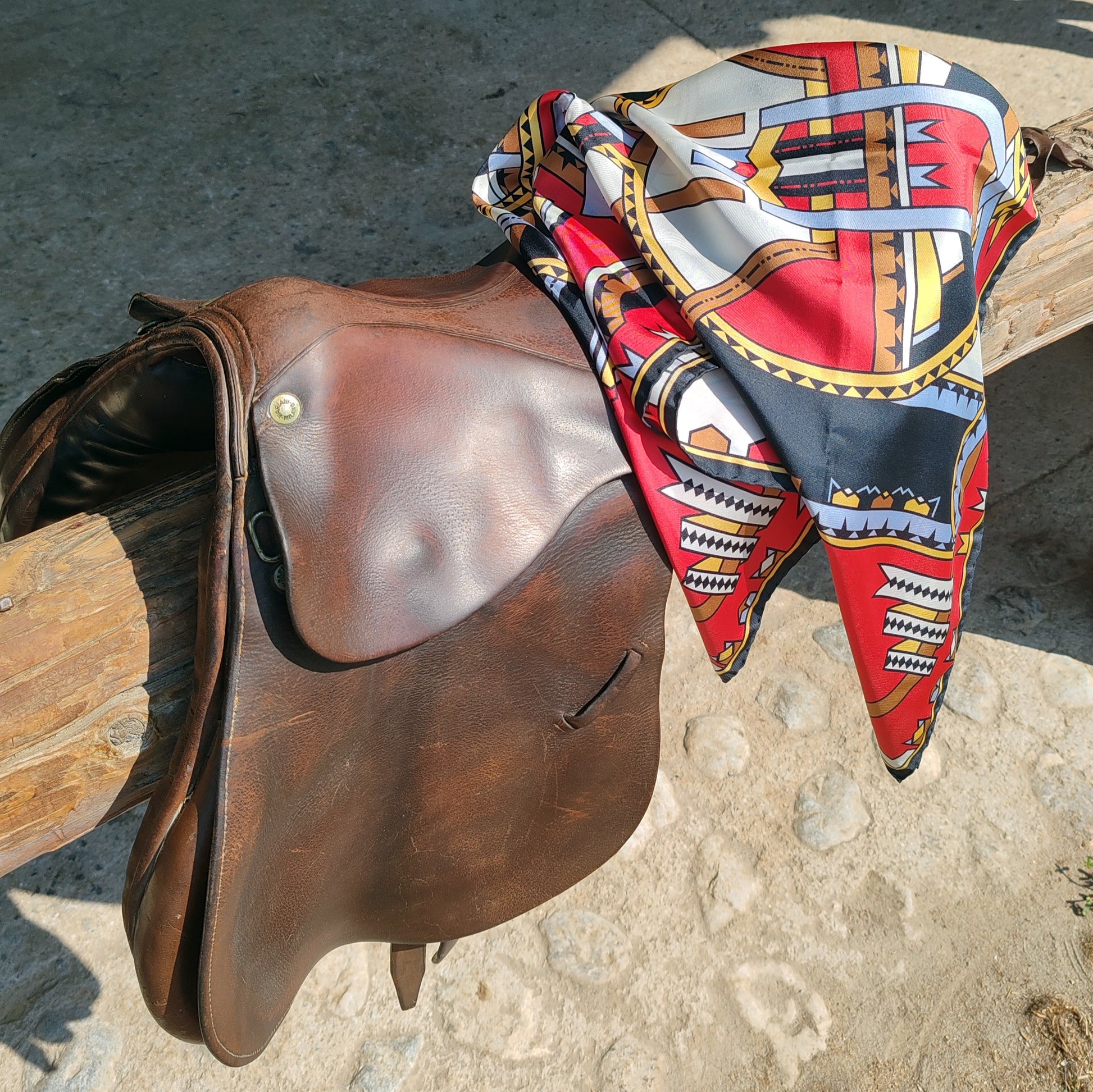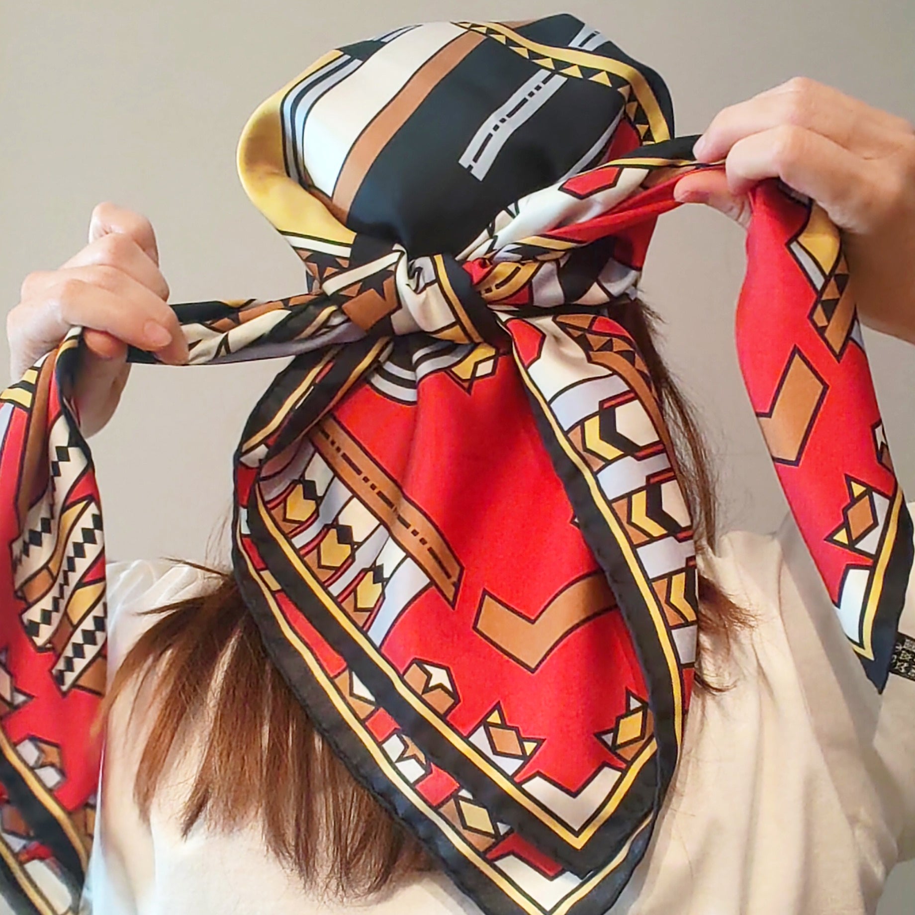 Foulard carré in seta | I nastri danzanti | rosso e giallo oro