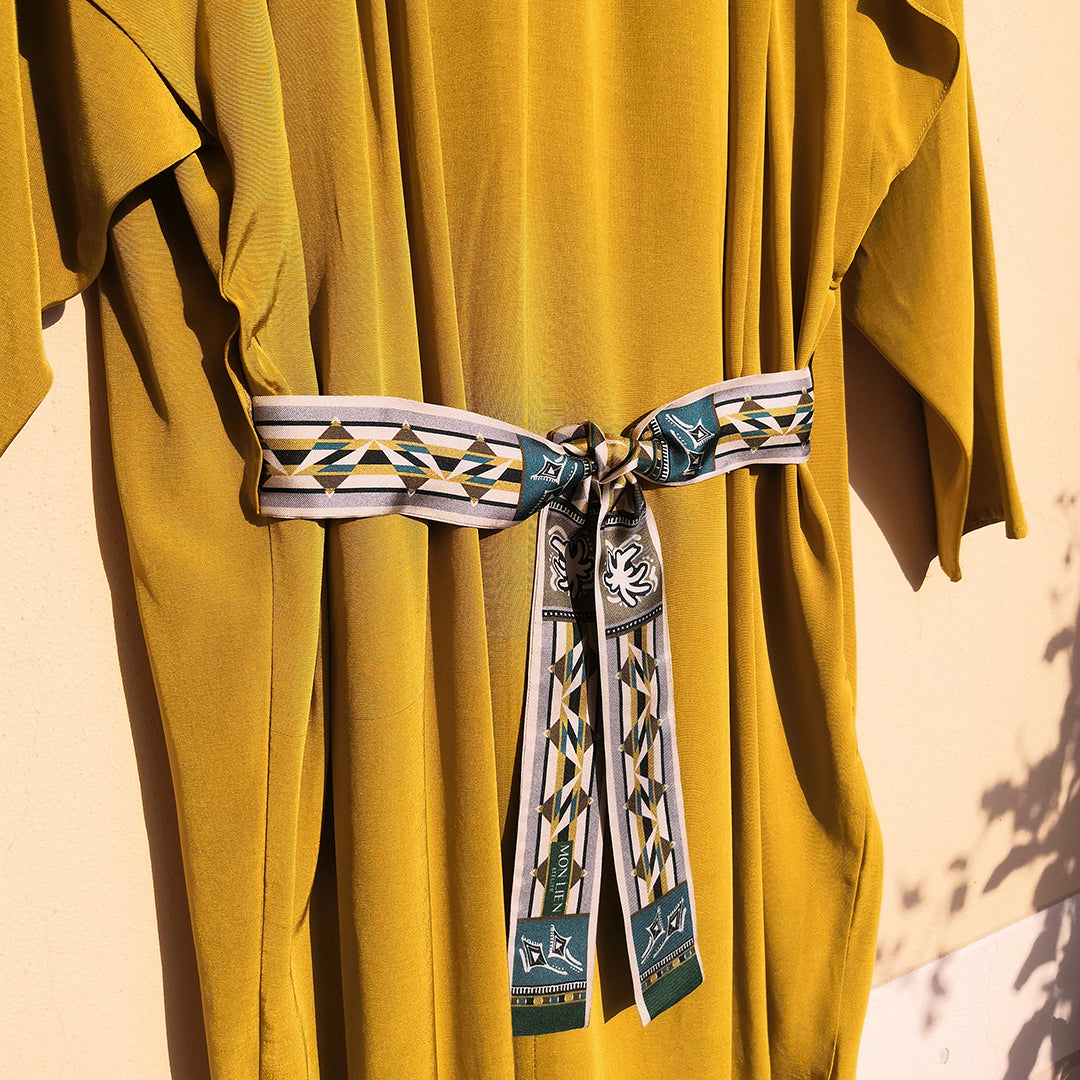 Fusciacca in seta | L'ebbrezza del volo | verde e ocra