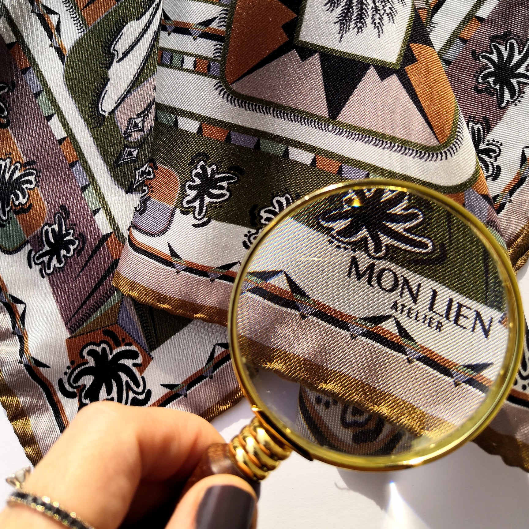 Pochette in seta | L'ebbrezza del volo | avorio e terra
