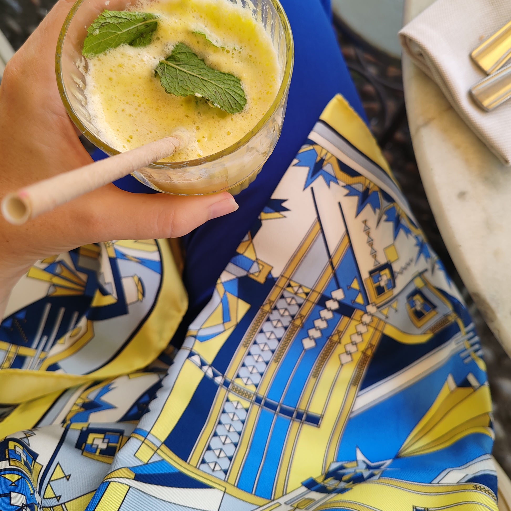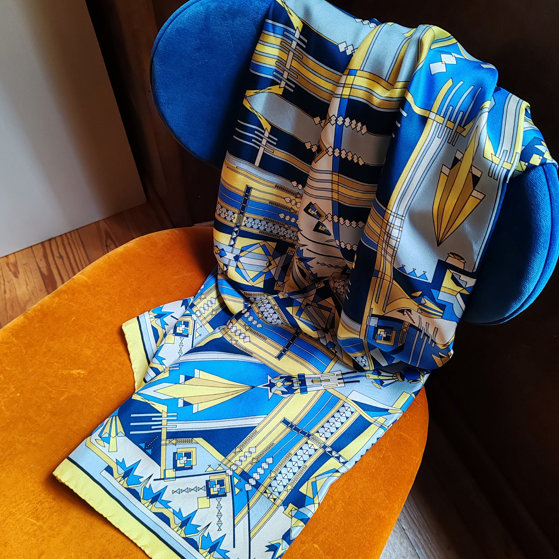 Stola in seta | Il sentiero misterioso | giallo e blu