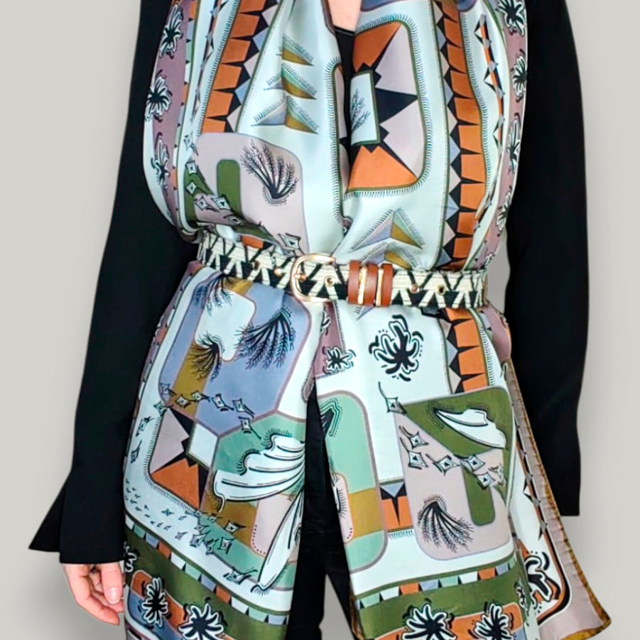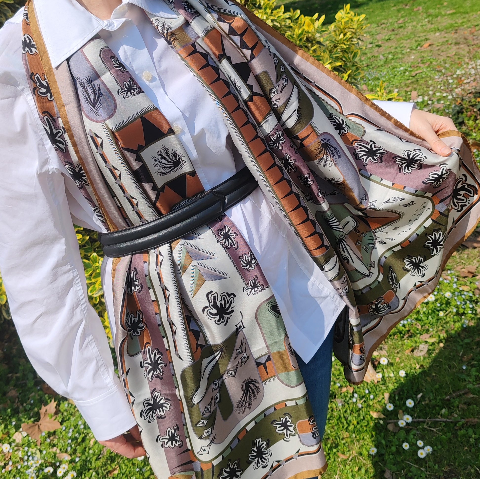 Stola in seta | L'ebbrezza del volo | avorio e terra